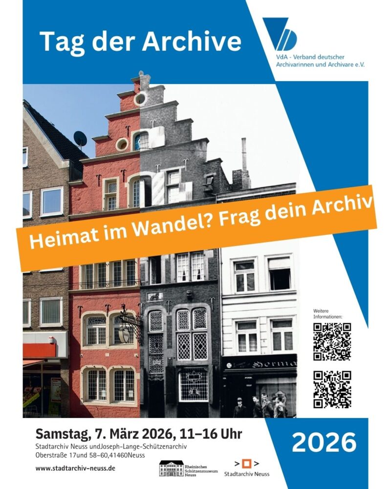 Auch in diesem Jahr beteiligt sich das Joseph-Lange-Schützenarchiv im Rheinischen Schützenmuseum Neuss am Samstag, 7. März 2026, am bundesweiten Tag der Archive. Der im zweijährigen Turnus vom Verband Deutscher Archivare veranstaltete „Tag der Archive“ steht in diesem Jahr unter dem Motto „Heimat im Wandel?“, ein Thema, mit dem sich das Schützenarchiv immer wieder beschäftigt. Denn…